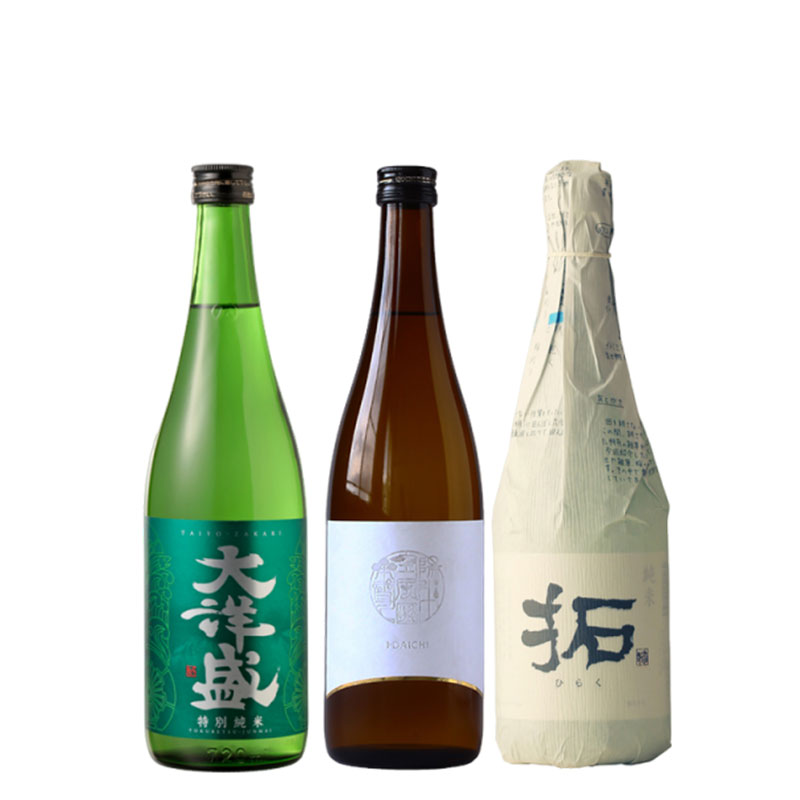 新潟県内の蔵元(加藤酒造店、頚城酒造、大洋酒造)より、おすすめの純米酒の詰合せです。