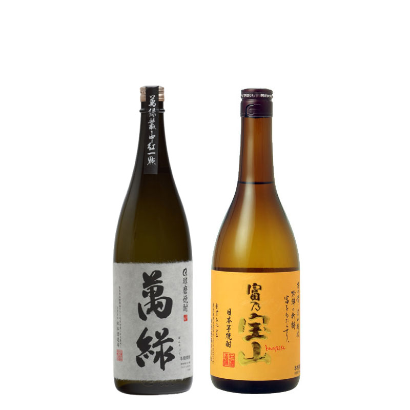 柑橘系の爽やかな香りとキレのいい口当りの上品な芋焼酎「富乃宝山」、華やかな香り、豊かな味わいでキレのよい米焼酎「萬緑」を詰め合わせました。