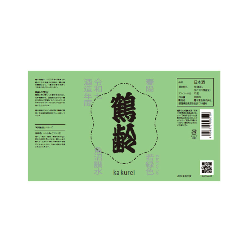 商品名 鶴齢 若緑色 春陽 一回火入れ原酒(かくれい わかみどりいろ しゅんよう いっかいひいでげんしゅ)